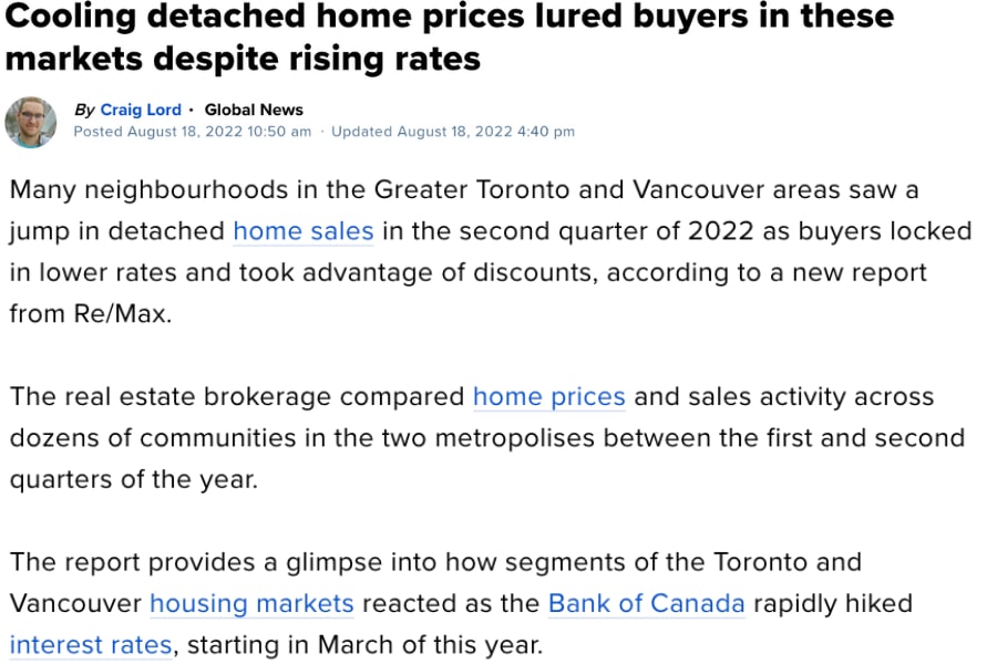 The newly released RE/MAX Canada 2022 Hot Pocket Communities Report compared market activity in the first and second quarter of 2022 in terms of unit sales and prices, analyzing 60 Toronto Regional Real Estate Board (TRREB) districts and 16 regions within the Real Estate Board of Greater Vancouver (REBGV), and six areas in the Fraser Valley Real Estate Board (FVREB).