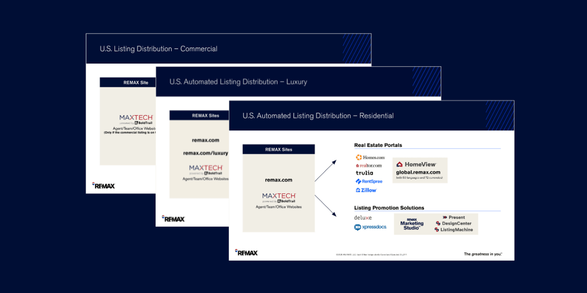 2026 Listing Syndication Slides Now Available! April 13, 2026|Get the latest, News, What's New| Show your recruits and agents where REMAX listings appear across the syndicated network of real estate portals (residential, commercial and luxury). Download the Listing Syndication Slides Here