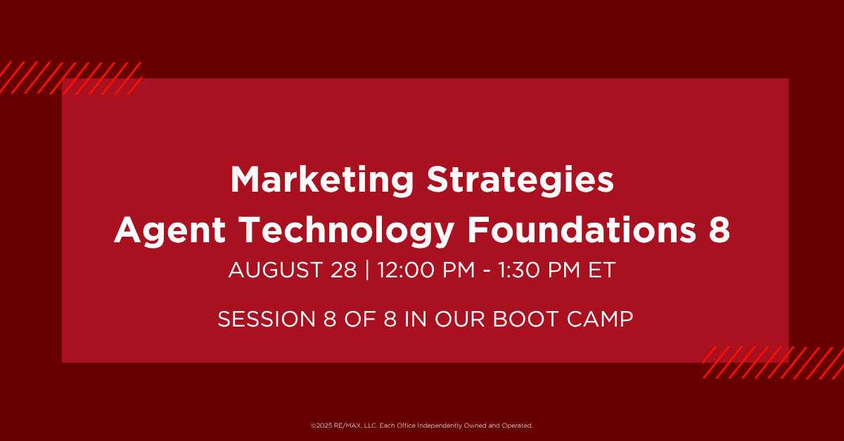 Attend this 90 minute interactive workshop and walk away with a simple to follow and easy to duplicate plan for leveraging the solutions within MAX/Tech powered by BoldTrail to effectively market your listings with ease across print and digital spaces. (US + Canada RE/MAX LLC Regions + Independent Regions) Session 8 of 8.